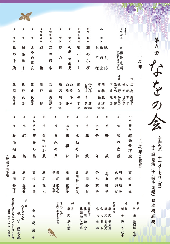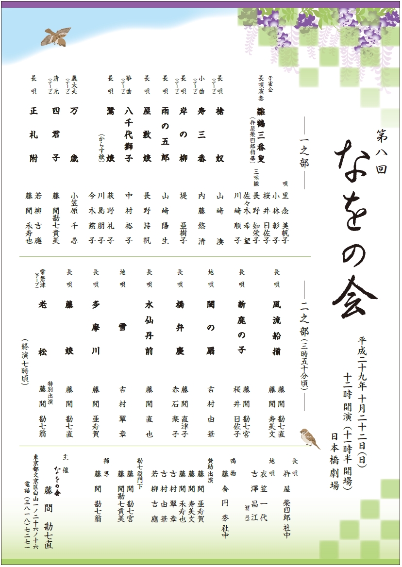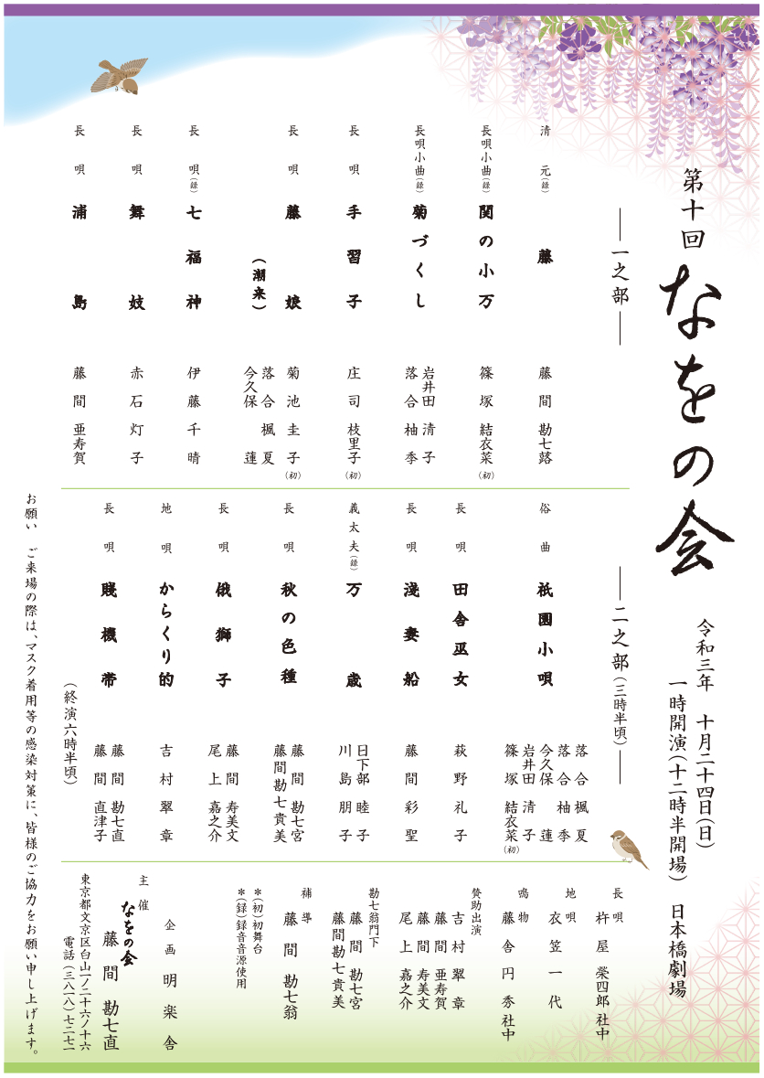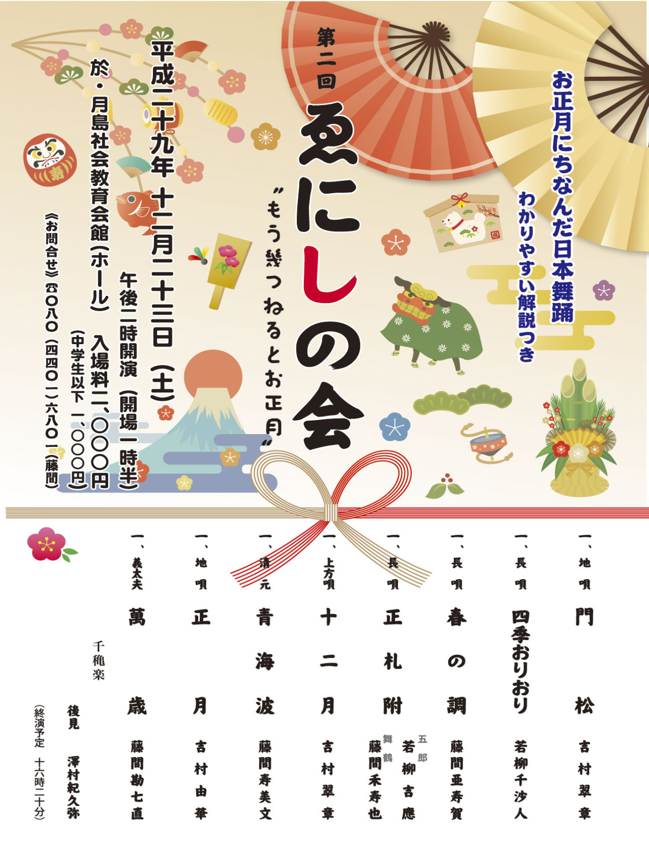 ・賛助 :由縁の月(吉村翠章様)、二人三番叟(藤間寿美文様)、虫の音(吉村由華様)